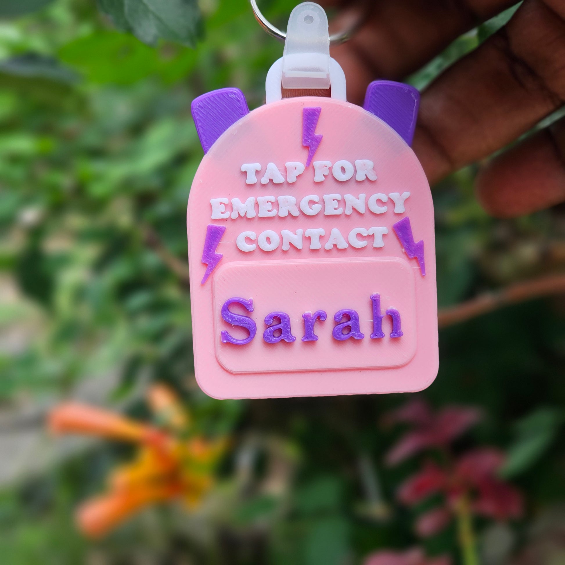 Just tap the tag with a smartphone, and your pre-programmed emergency contact info pops up instantly – no app needed!