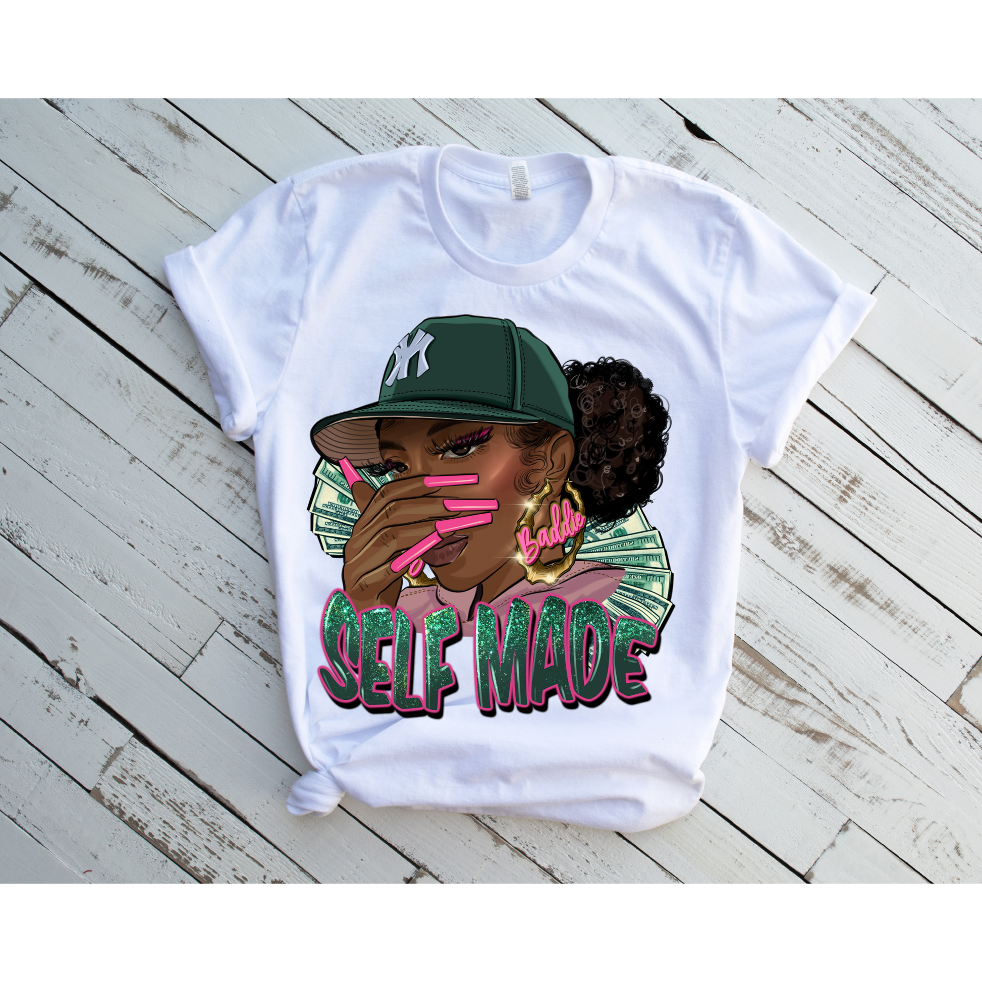 Look effortlessly stylish in this Self Made T-shirt! Designed to bring out the perfect combination of cute and confidence, this piece is perfect for the modern woman. Crafted from the highest quality fabrics, you'll enjoy maximum comfort and long-lasting wear. Show off your own unique style with this one-of-a-kind tee!