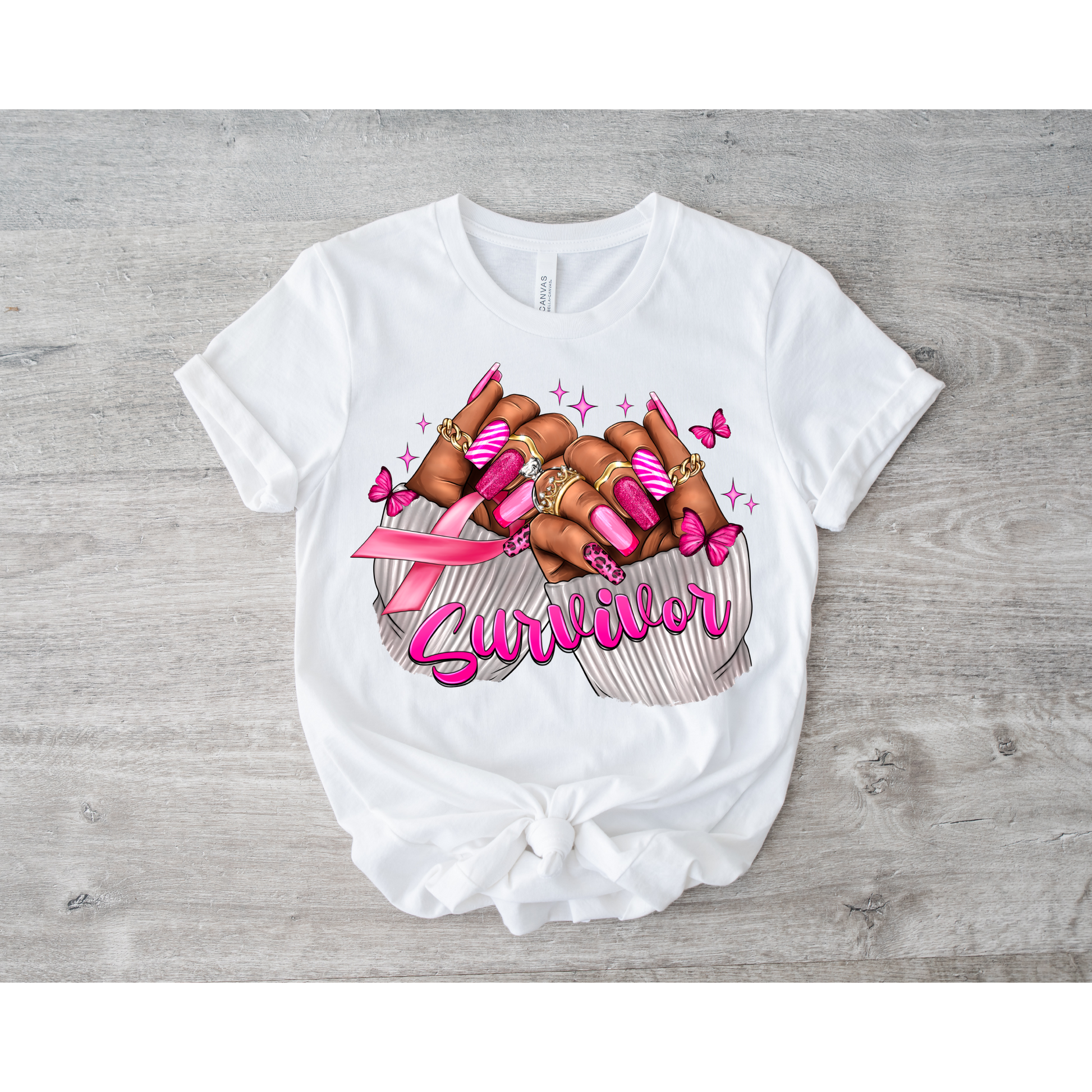 Stay strong and show your support for Breast Cancer Awareness with Survivor Nails. This stylish and comfortable shirt is perfect for October when we all wear pink to show our support.
